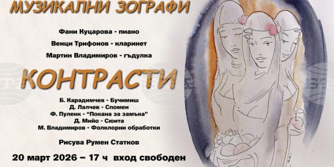 В програмата на „Контрасти“ са включени творби от европейския модернизъм, българската класика и фолклорни обработки. Входът за концерта е свободен.