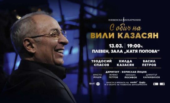 Плевен ще бъде домакин на премиерата на музикалния спектакъл „С обич на Вили Казасян“ – най-новия проект на Плевенската филхармония, в който участват Хилда Казасян, Васил Петров и Теодосий Спасов. Представлението е насрочено за 13 март и ще започне от 19.00 часа в зала „Катя Попова“.