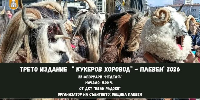 Третото издание на Кукеров хоровод в Плевен ще отбележи Сирни заговезни с дефиле и благотворителни каузи на 22 февруари 2026